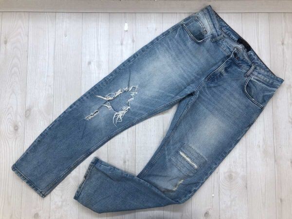 > ザラ ZARA 1975 ストリート サーフ グランジ ウォッシュ加工 スリムテーパード ダメージ デニムパンツ ジーンズ レディース 40 青