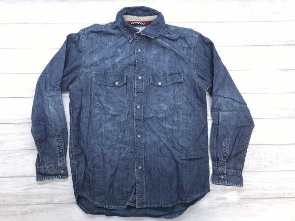 - GAP ギャップ レトロ アメカジ オーセンティック 古着 スナップボタン シャンブレー 長袖 ウエスタン シャツ キッズ コットン100% 160 紺
