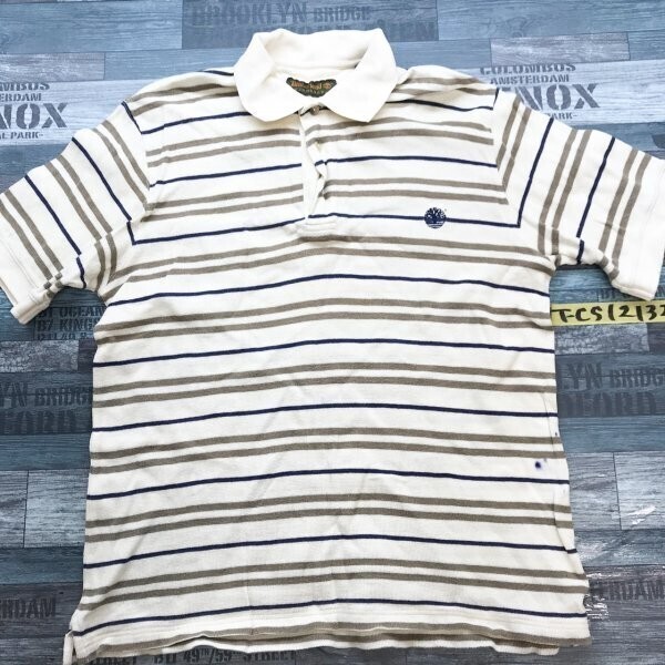 - Timberland ティンバーランド メンズ ボーダー 鹿の子 半袖ポロシャツ S クリーム