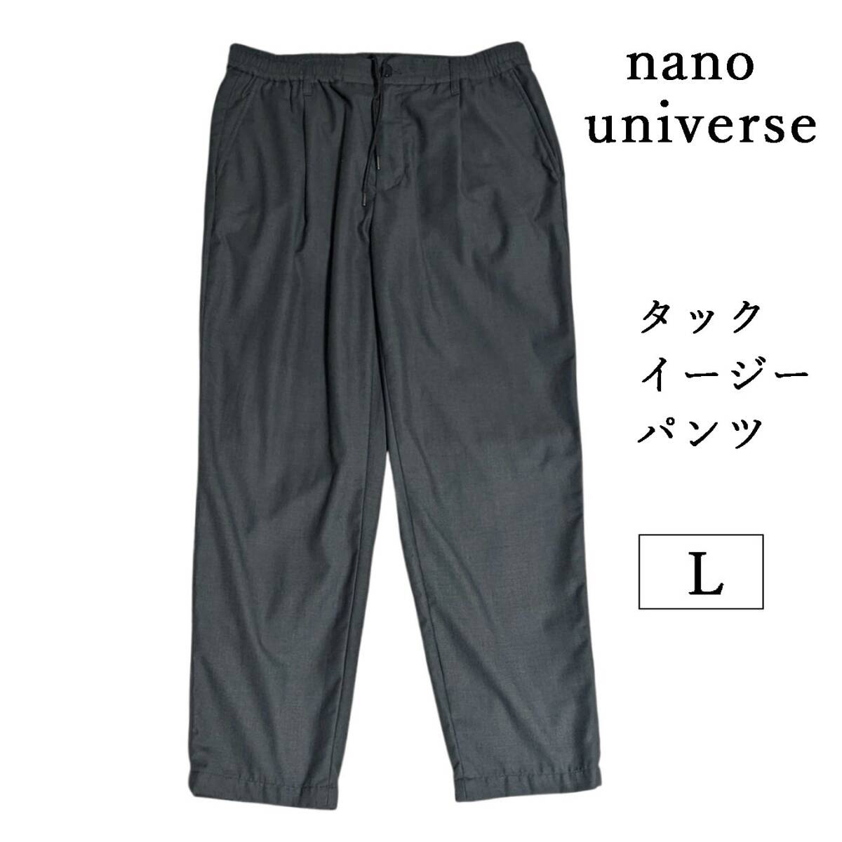 - nano universe ナノ・ユニバース タック イージーパンツ テーパード スラックス メンズ L グレー プリーツ