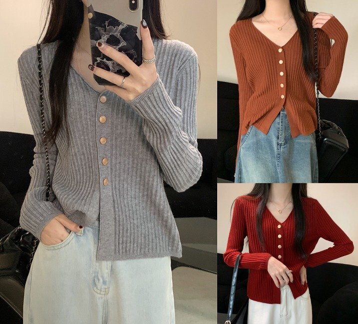 - 長袖トップス 切り替え スリム 着痩せ カットソー シンプル フリー 色品番3