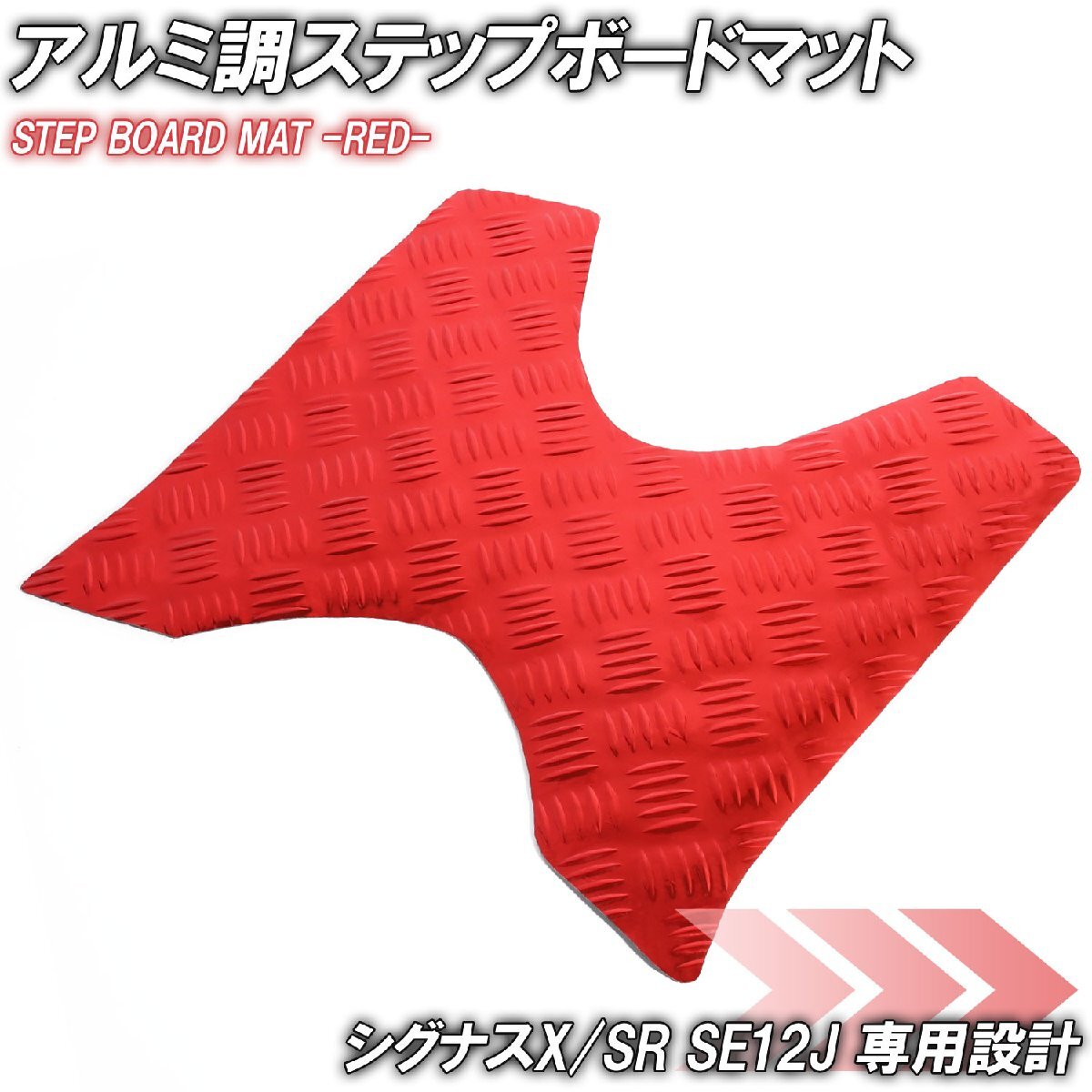 > アルミ調 ステップマット ヤマハ シグナスX/SR 1型 SE12J SE371 レッド メッキ バイク ゴムマット ステップボード カスタム