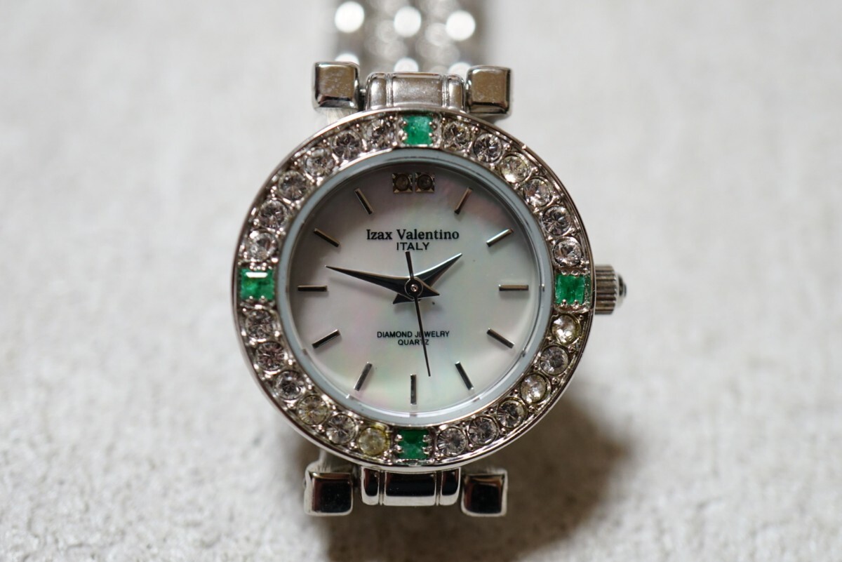 - F2149 Izax Valentino 天然ダイヤモンド 2石 文字盤 エメラルド レディース 腕時計 アクセサリー ヴィンテージ ブランド クォーツ 不動品