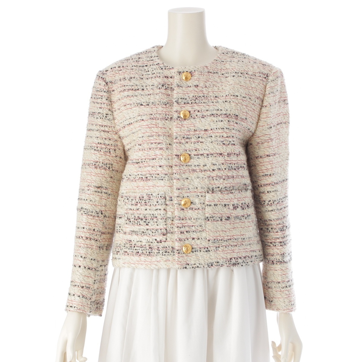 - セリーヌ 22-23AW ウール モヘア ツイード クロップド 金ボタン ノーカラージャケット 2V83I389T マルチカラー 36【中古】