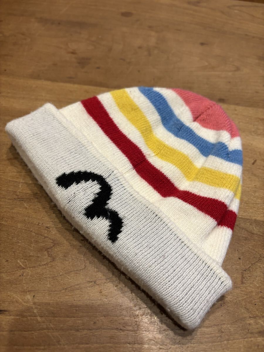 - エヴィス EVISU ニット帽 ビーニー ボーダー柄 マルチカラー ニットキャップ