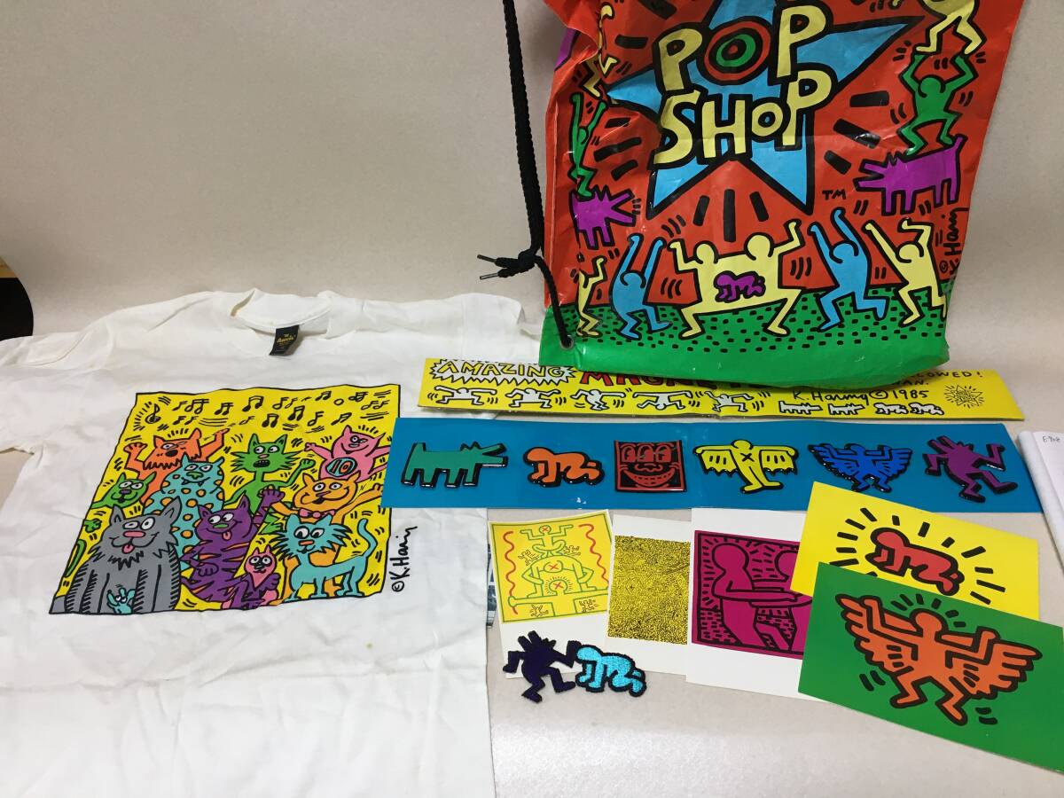 - E912 キース・ヘリング(Keith Haring)半袖 はがき マグネット? ショップ袋 グッズ