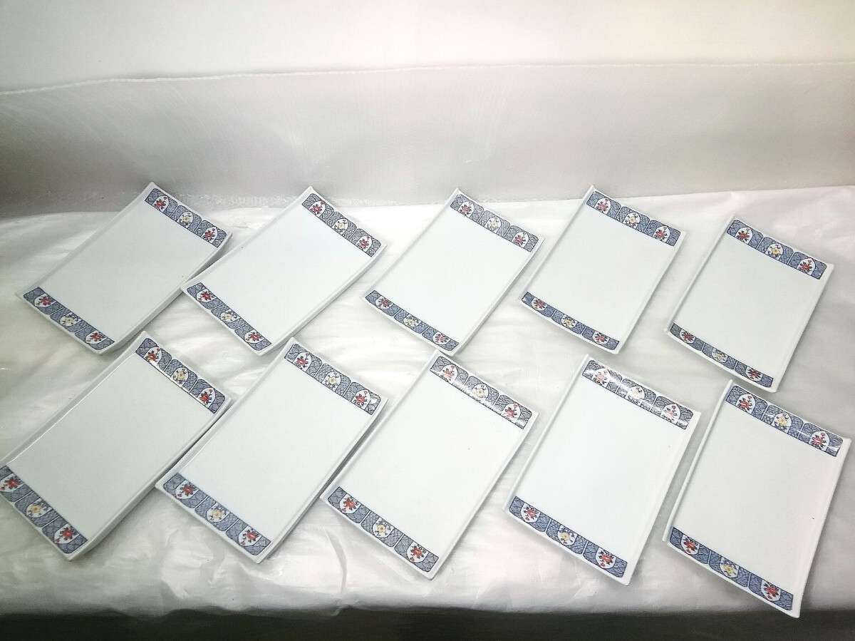 - 有田焼 幸楽作 錦小菊紋 長皿 10客セット 焼き魚皿/刺身皿/長角皿/長方形皿 陶器 食器 伝統 工芸品 ⑩
