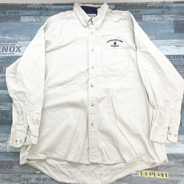 > HIGHLAND メンズ USA製 企業名刺繍入り コットン100% ボタンダウン 長袖シャツ 大きいサイズ XL ベージュ