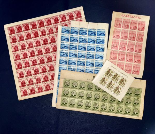 - ▼日本切手/シート/100枚シート/小型シート/全国緑化運動/スカウト運動50周年/日本貿易博覧会/大東亜戦争1年/日本国憲法施行▼sk247