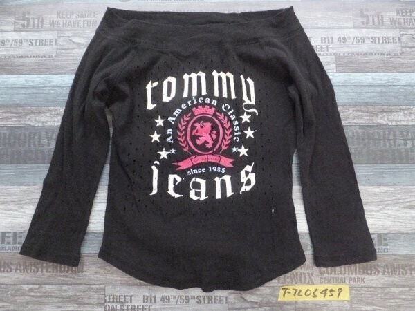 - TOMMY JEANS トミージーンズ レディース ロゴプリント パンチング加工 七分袖カットソー S 黒