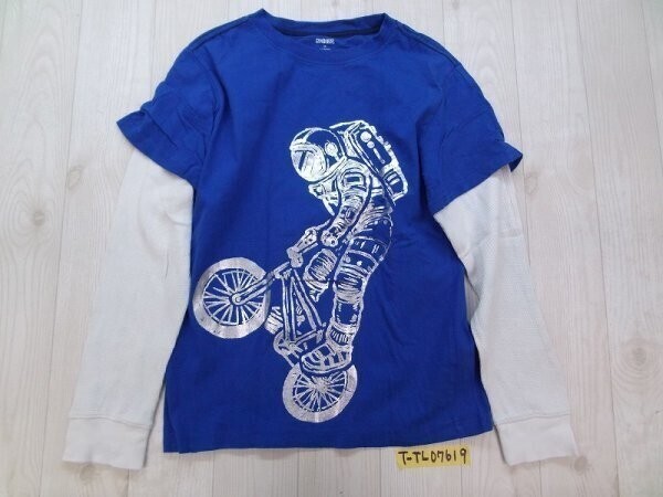 - GYMBORee メンズ 箔プリント 重ね着風 ロンT 長袖Tシャツ 青