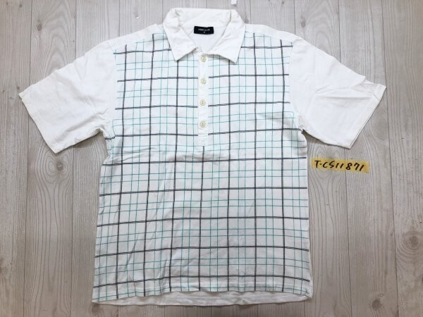 - COMME CA ISM コムサイズム メンズ チェック柄 半袖ポロシャツ M オフホワイトミント黒