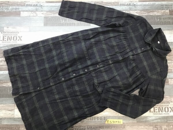 - 無印良品 良品計画 レディース マジックテープ チェック柄 シャツワンピース M-L 緑紺