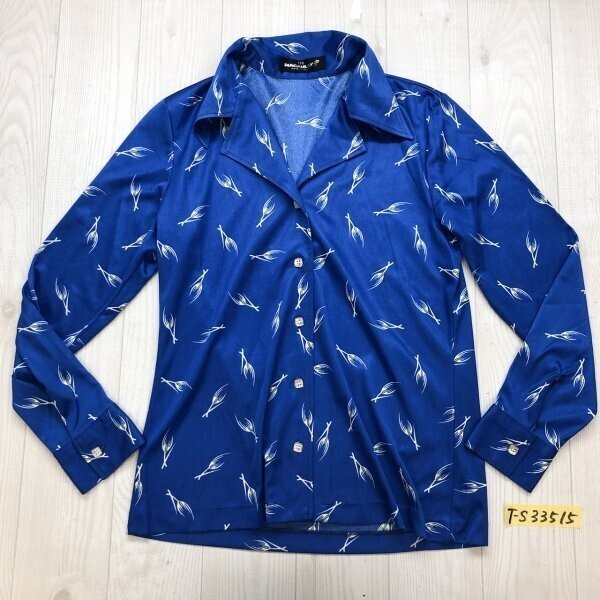 - MACAULAYS レディース 日本製 総柄 オープンカラーシャツ 11号 青