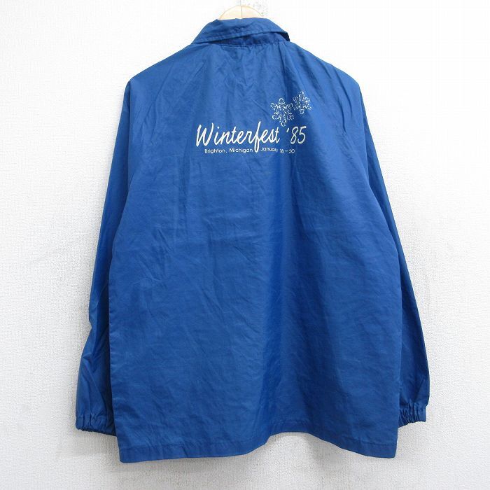 - M/古着 長袖 ナイロン ジャケット メンズ 80s Winterfest 雪柄 ラグラン 紺 ネイビー 25nov04 中古 アウター ウインドブレーカー