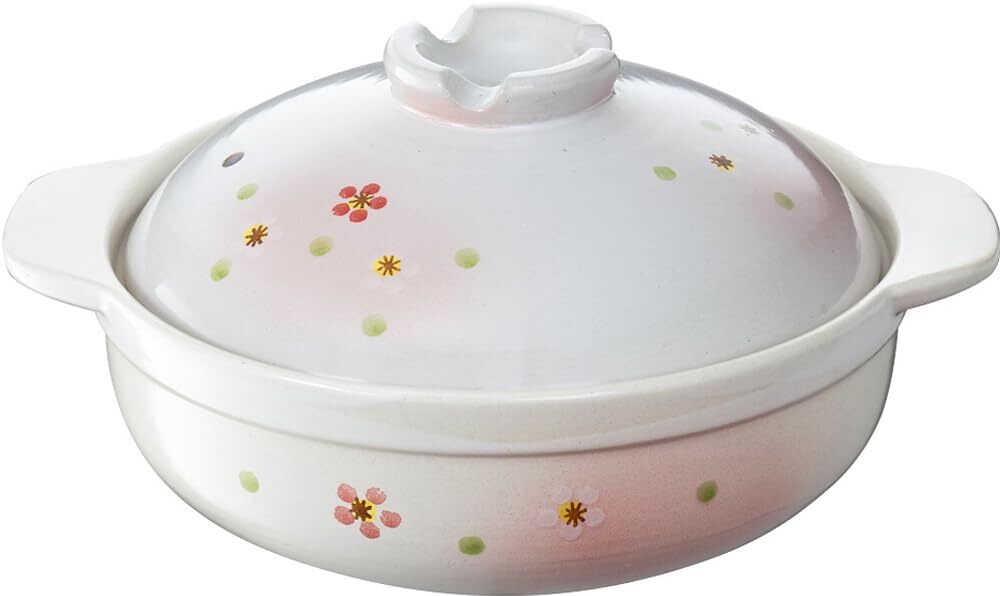 - イシガキ 土鍋 6号 白 ピンク サイズ 約直径22.5×奥行18.5×高11cm 容量 0.8L 花の香 1~2人用 ガス火用