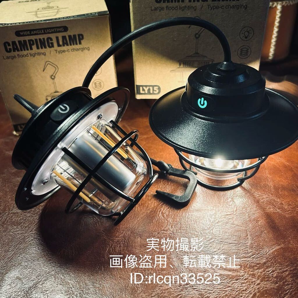 - キャンプ用 LEDランタン 吊り下げ 2個セット IPX4防水 TYPE-C充電式 15w 大容量4000mAhアウトドア 野外登山