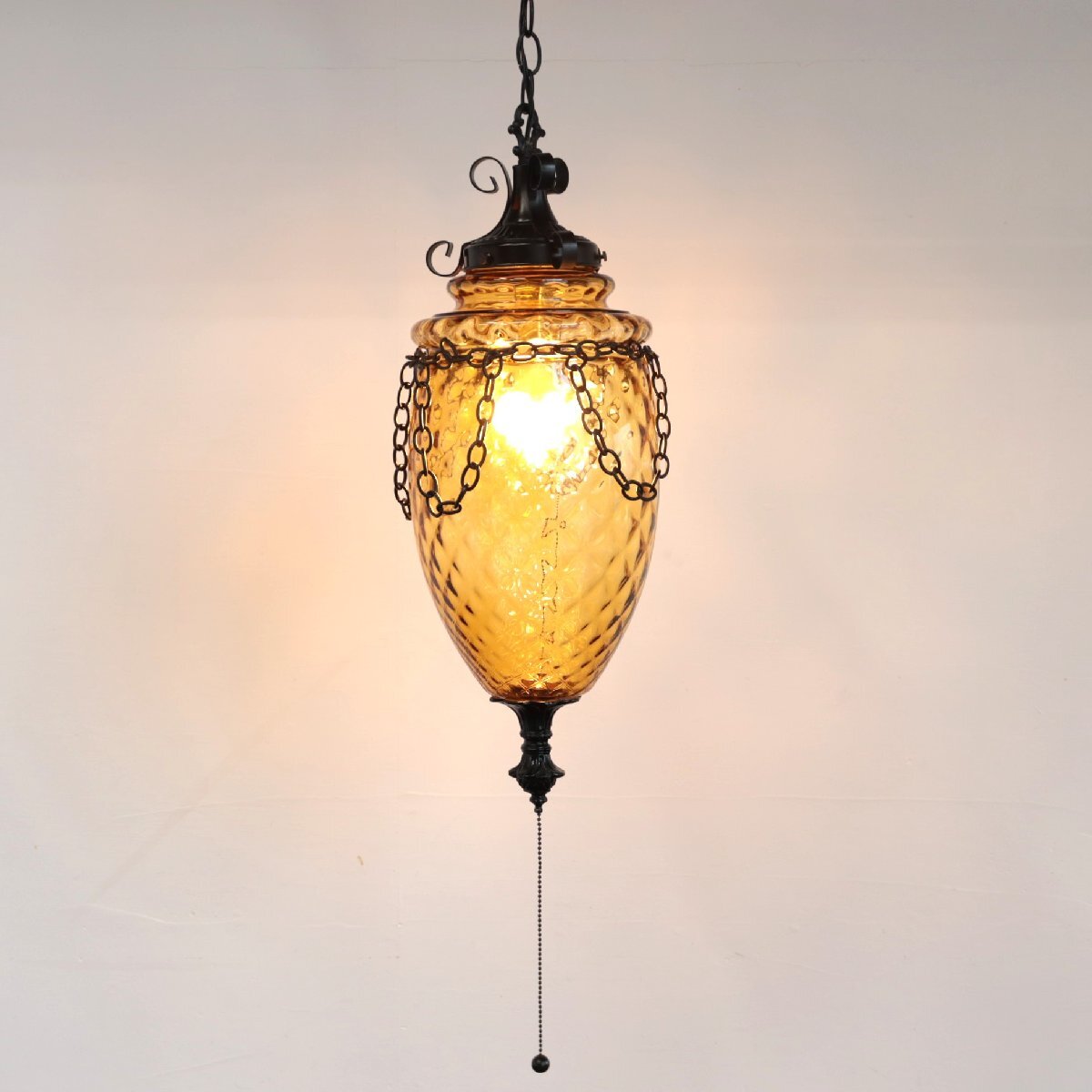 > ヴィンテージ アンバー ペンダントライト【#4329】アメリカ アンティーク 琥珀色 ガラス 吊り下げランプ カフェ 照明 シーリング USA