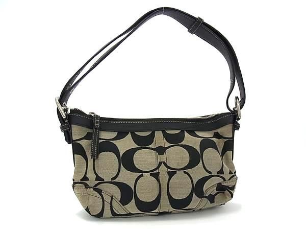 - 1円 COACH コーチ F13080 シグネチャー キャンバス×レザー ワンショルダーバッグ 肩掛け レディース ブラック系 FP8051