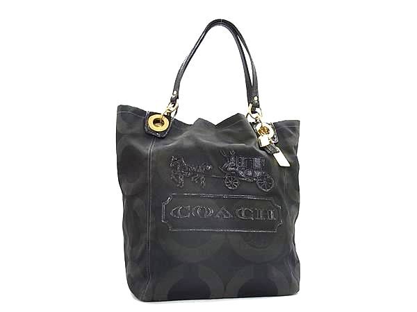 - 1円 ■美品■ COACH コーチ 13001 オプアート キャンバス×パテントレザー トートバッグ ショルダー 肩掛けかばん ブラック系 BQ1967