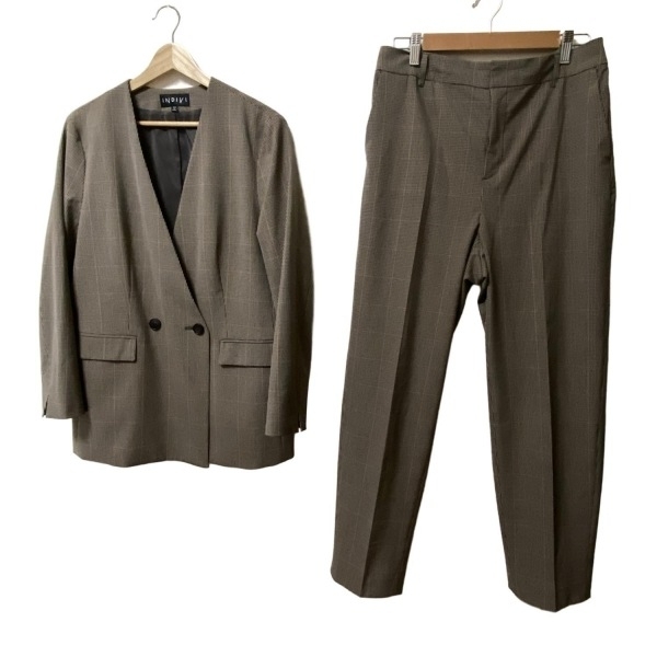 > インディビ INDIVI レディースパンツスーツ 黒×ベージュ×マルチ レディース ダブル/チェック柄 レディーススーツ