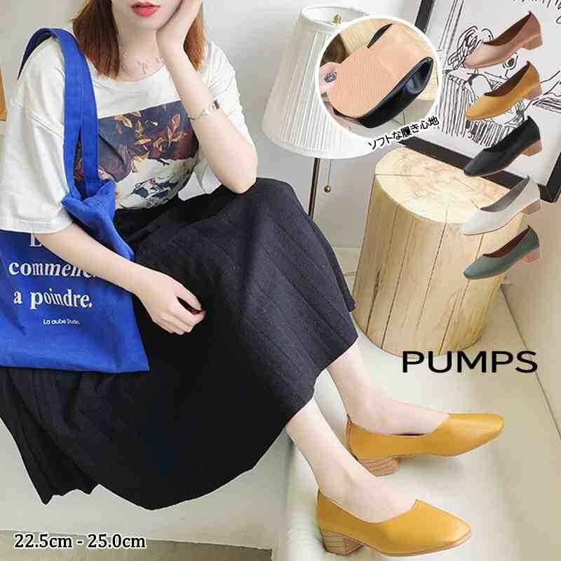 - パンプス スクエア ソフト アンクルストラップ チャンキーヒール 太ヒール なめらか 38 ピンク