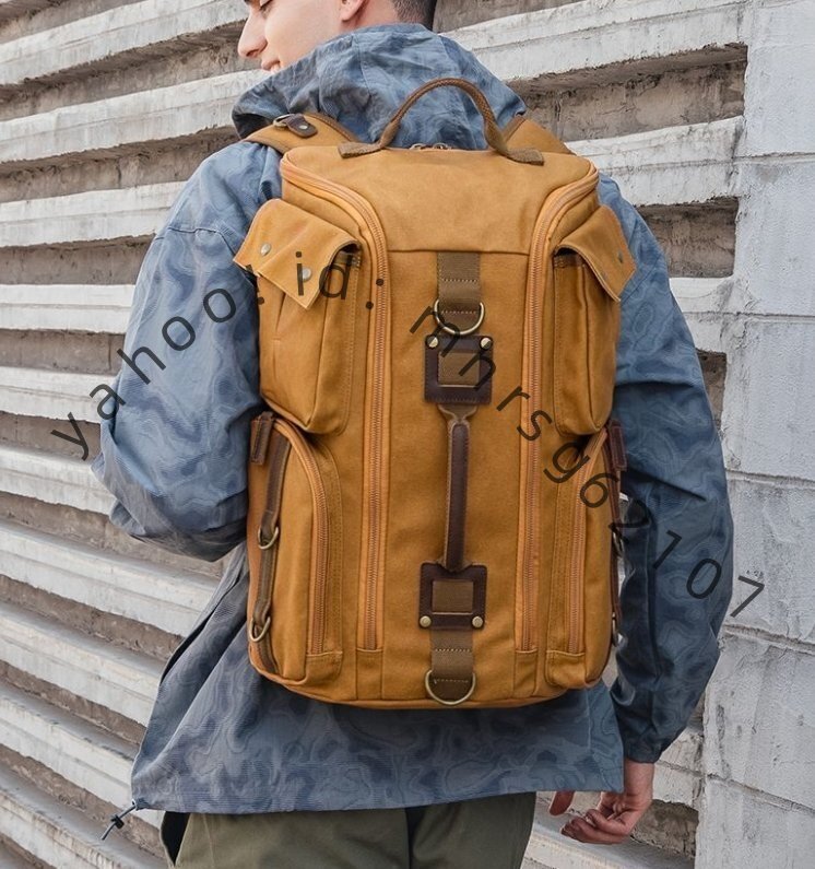 - キャンバスレトロショルダーバッグ男性用アウトドアカジュアルリュック男女兼用防水大容量キャリーバッグパソコンリュック