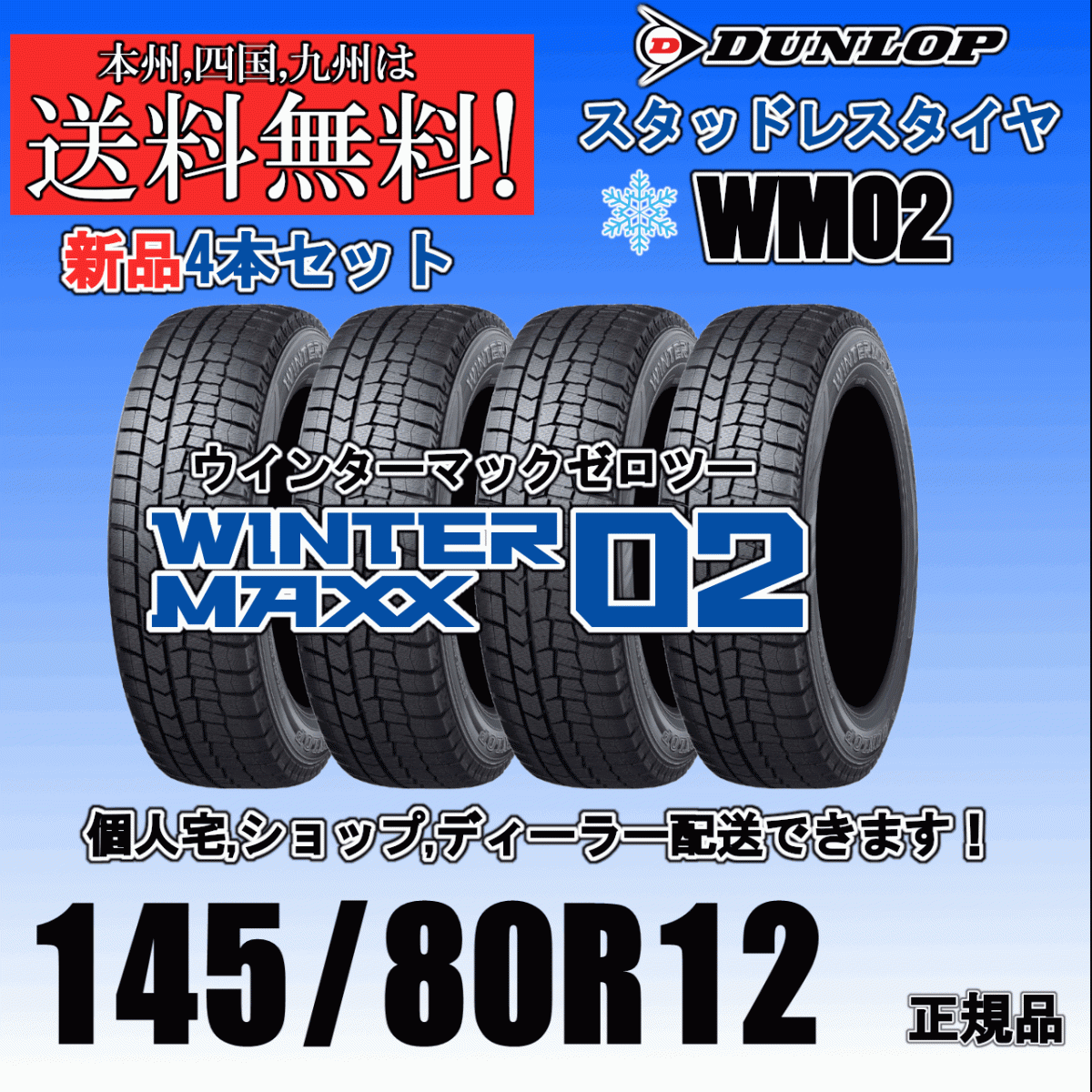 > 145/80R12 74Q 24年製以降 送料無料 ウインターマックス02 WM02 ダンロップ スタッドレスタイヤ 新品 4本価格 正規品