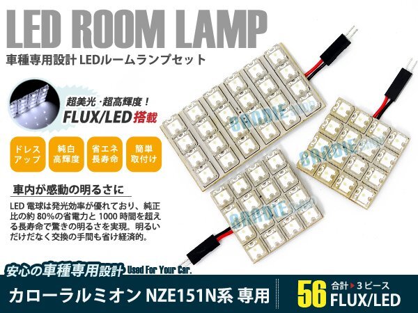 > NZE151N系 カローラルミオン 3ピース 合計56ブロック発光 ルームランプ LED化 白発光 高輝度FLUXタイプ 一台分セット