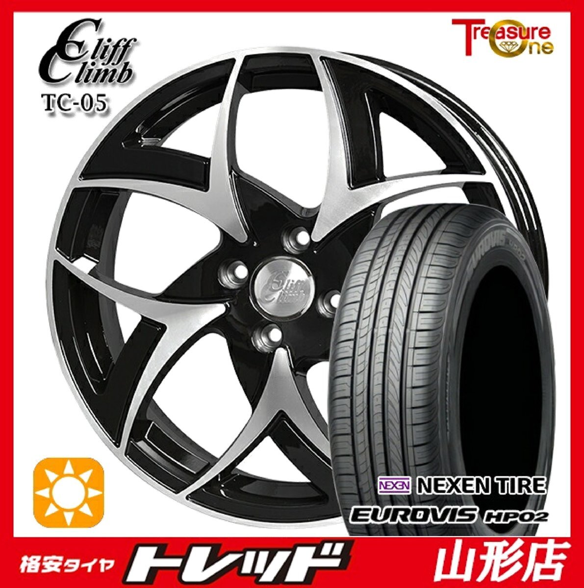 > 山形店★送料無料★新品 夏タイヤホイール4本セット クリフクライムTC-05 14インチ 4.5J 4H100 ロードストーンHP02 155/65R14 2025年製