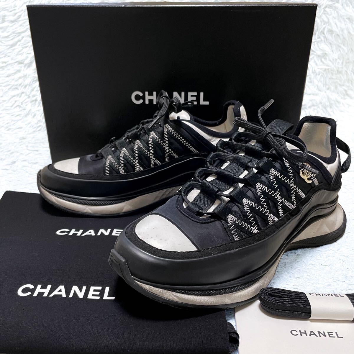- CHANEL シャネル 2023-2024年コレクション 24B スピンドル ココマーク スニーカー シューズ 靴 G46009 37 1/2 24.5cm相当 黒×白