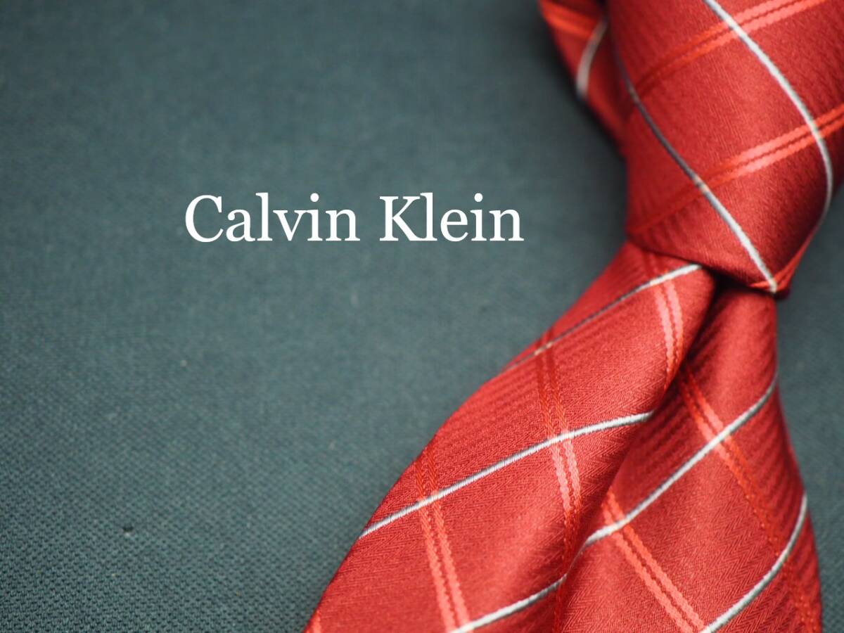 - 美品【Calvin Klein カルバンクライン】 G1011 赤ワイン系 SILK ブランド ネクタイ 古着 良品 転売 仕入