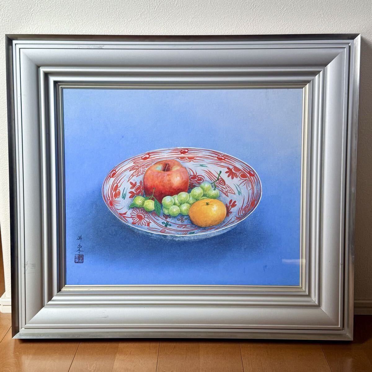 - *fufu* 真作保証 五十川昇乗 「赤絵皿に静物」 肉筆日本画8号 共シール タトウ箱 パンフレット付 フルーツ ao