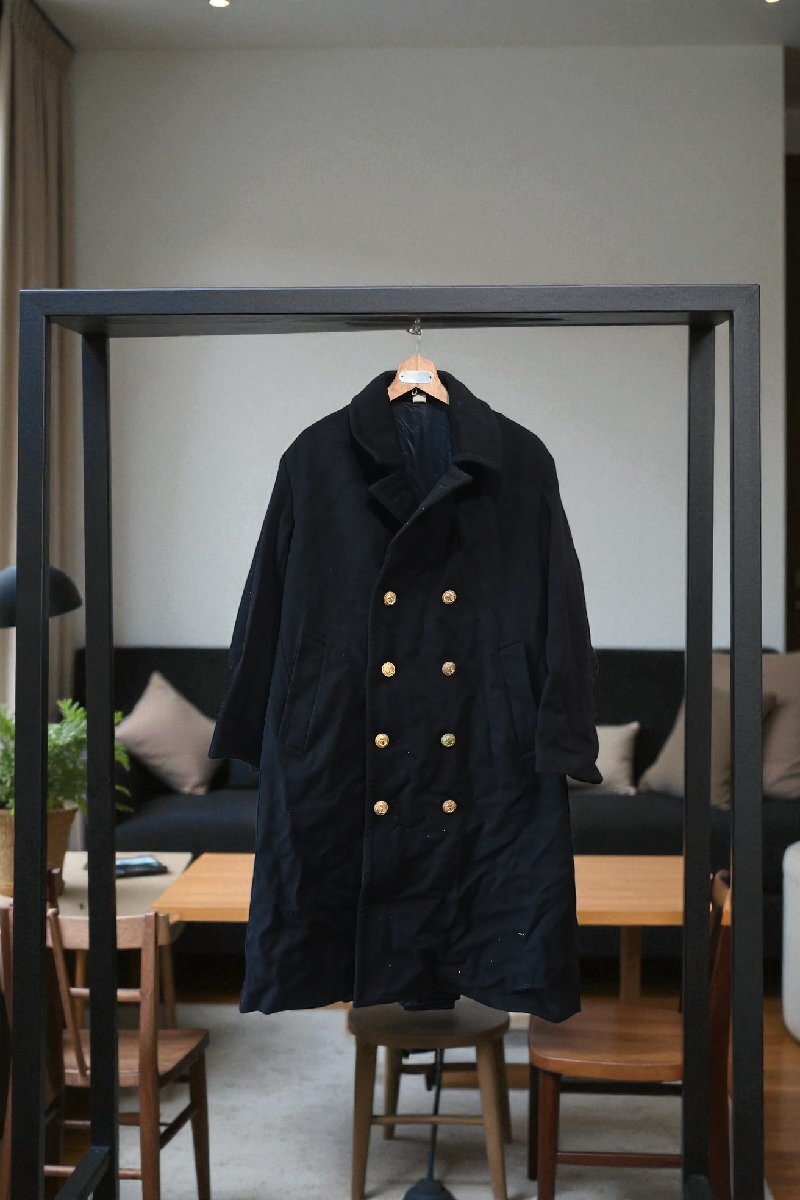 - ○昭和30年 海上自衛隊の正規支給品のロングコート 冬用ダブルブレスト外套 サイズ2号 古道具のgplus広島*2511k
