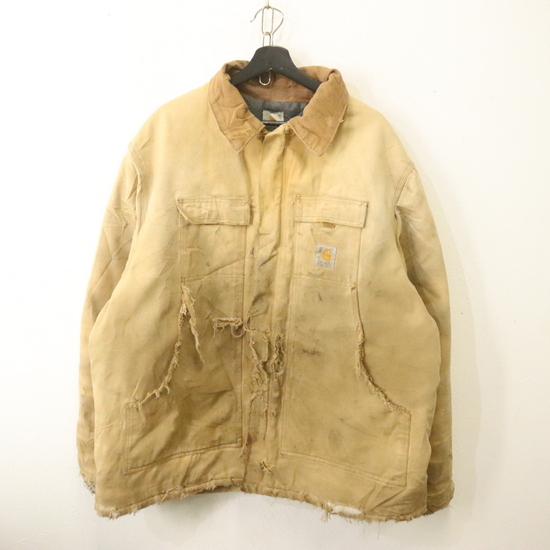 > J8 90sビンテージ カーハート Carhartt ダック トラディショナルコート■1990年代製 XLサイズくらい ブラウン ボロ 中綿 アメカジ 古着 80s