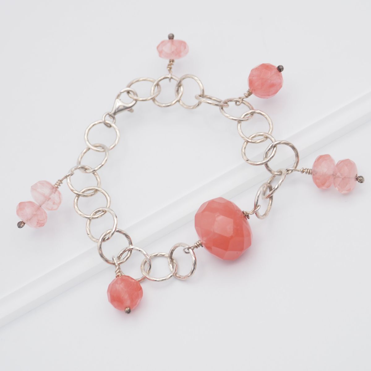 - H441 ピンクストーン 925刻印 ブレスレット デザイン シルバー ヴィンテージ