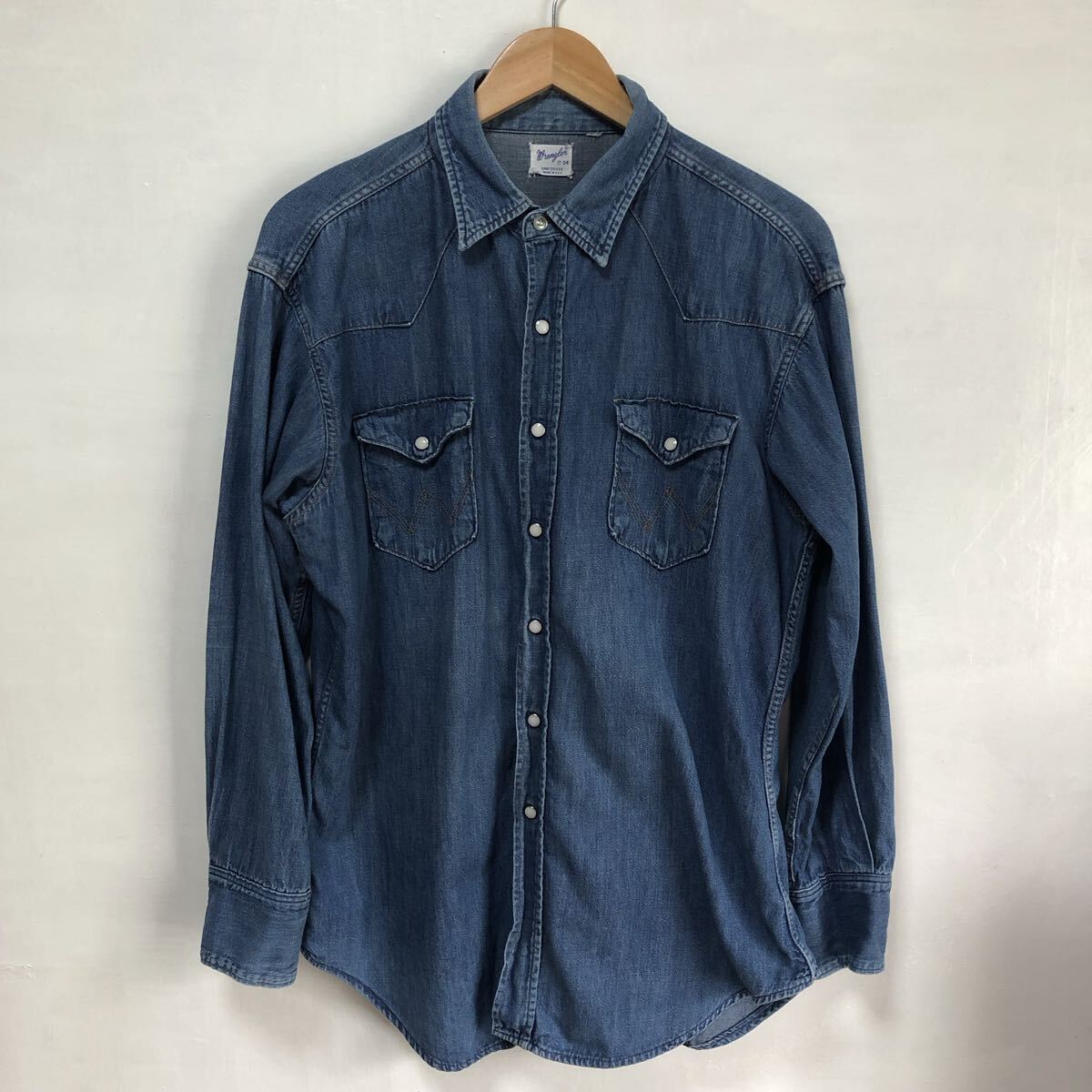 - アメリカ製 ヴィンテージ ラングラー WRANGLER 白タグ チビタグ デニムウエスタンシャツ 27MW 60's 70's 17- 34 XL相当 used