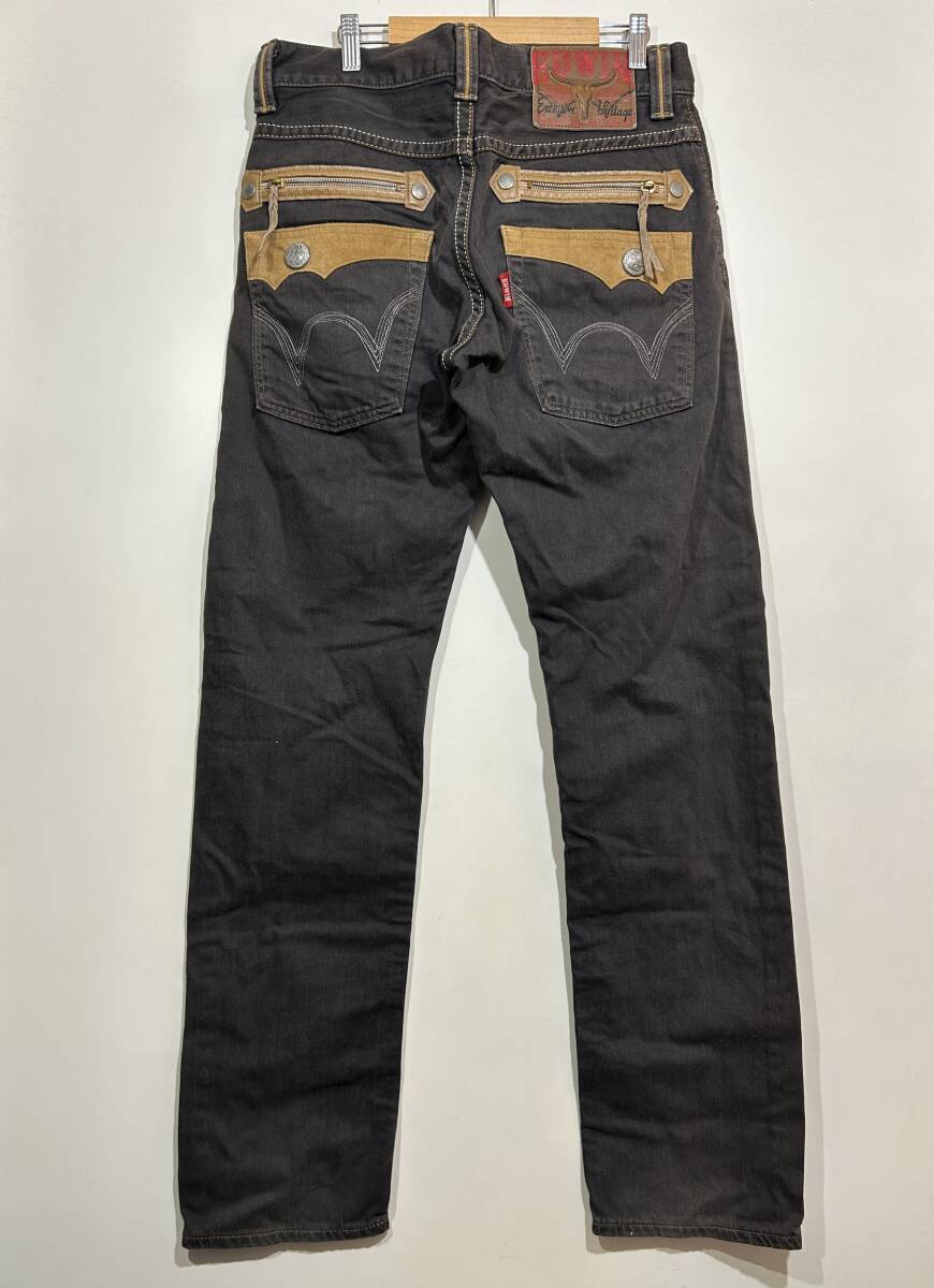 > ★ EDWIN 483XVS ウエスタンデザイン テーパード デニムパンツ W32 フェイクレザー スウェード調 ビンテージ加工 ブラック 日本製