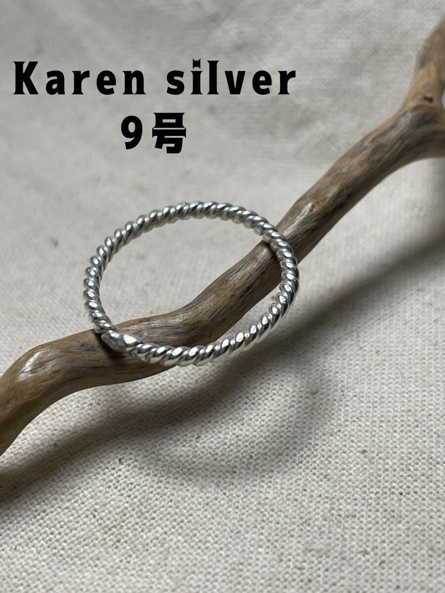 - R2510Dぞbき 捻りKaren純銀シンプルカレンシルバーピンキー 指輪スターリング9号ねじりbき