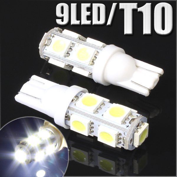 9連 SMD/LEDバルブ T10 ホワイト ウェッジ 2個 ポジション球等に