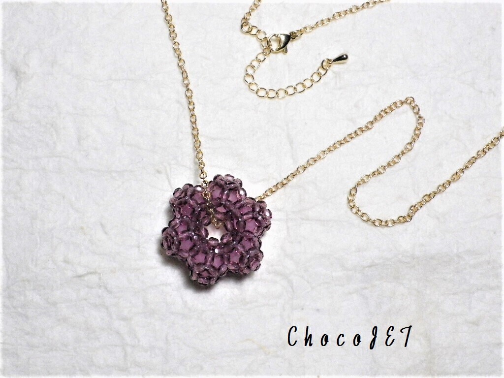 - チェコビーズ・ボールリングネックレス アメジストパープル・クリスタルビーズ 赤色紫色