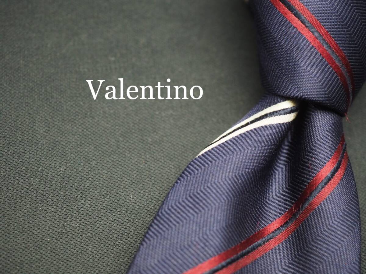 > 美品【VALENTINO ヴァレンティノ】 G1140 ネイビー系 SILK ブランド ネクタイ 古着 良品 転売 仕入