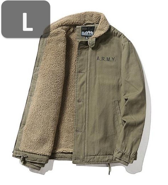 - ブルゾン アウター グリーン Lサイズ 防寒 裏起毛 裏ボア 【a1000】