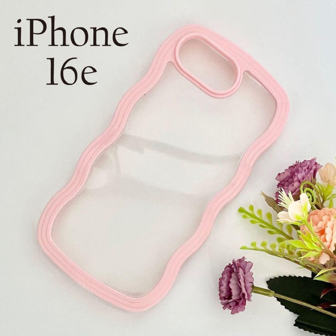 - iPhone16eケース 波型ウェーブ ソフトTPU:ピンク ☆おまけガラスフィルム付