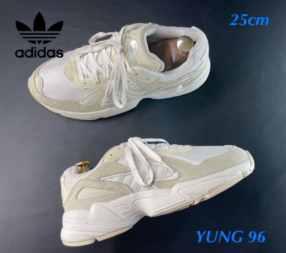 - 名機降臨!90's復刻ダットスタイル!19年製!アディダス【ヤング96】ローカットスニーカー!ホワイト×グレー 25cm/US7