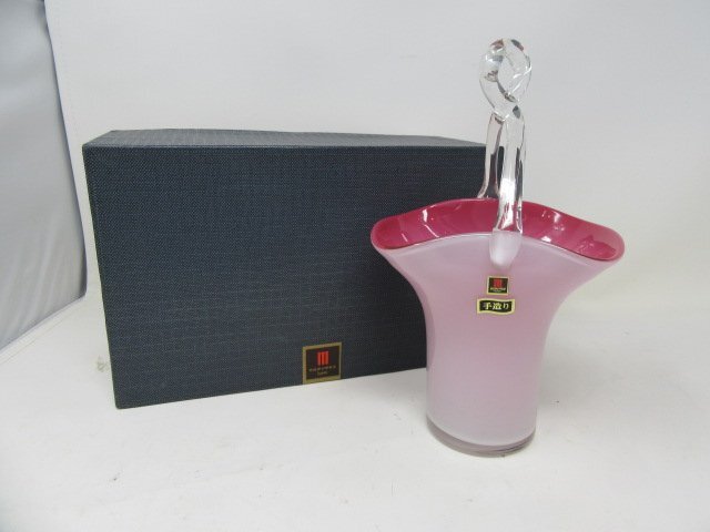 ◆マルティグラス フラワーベース ガラス花瓶 ピンク系 中古◆5506拍卖
