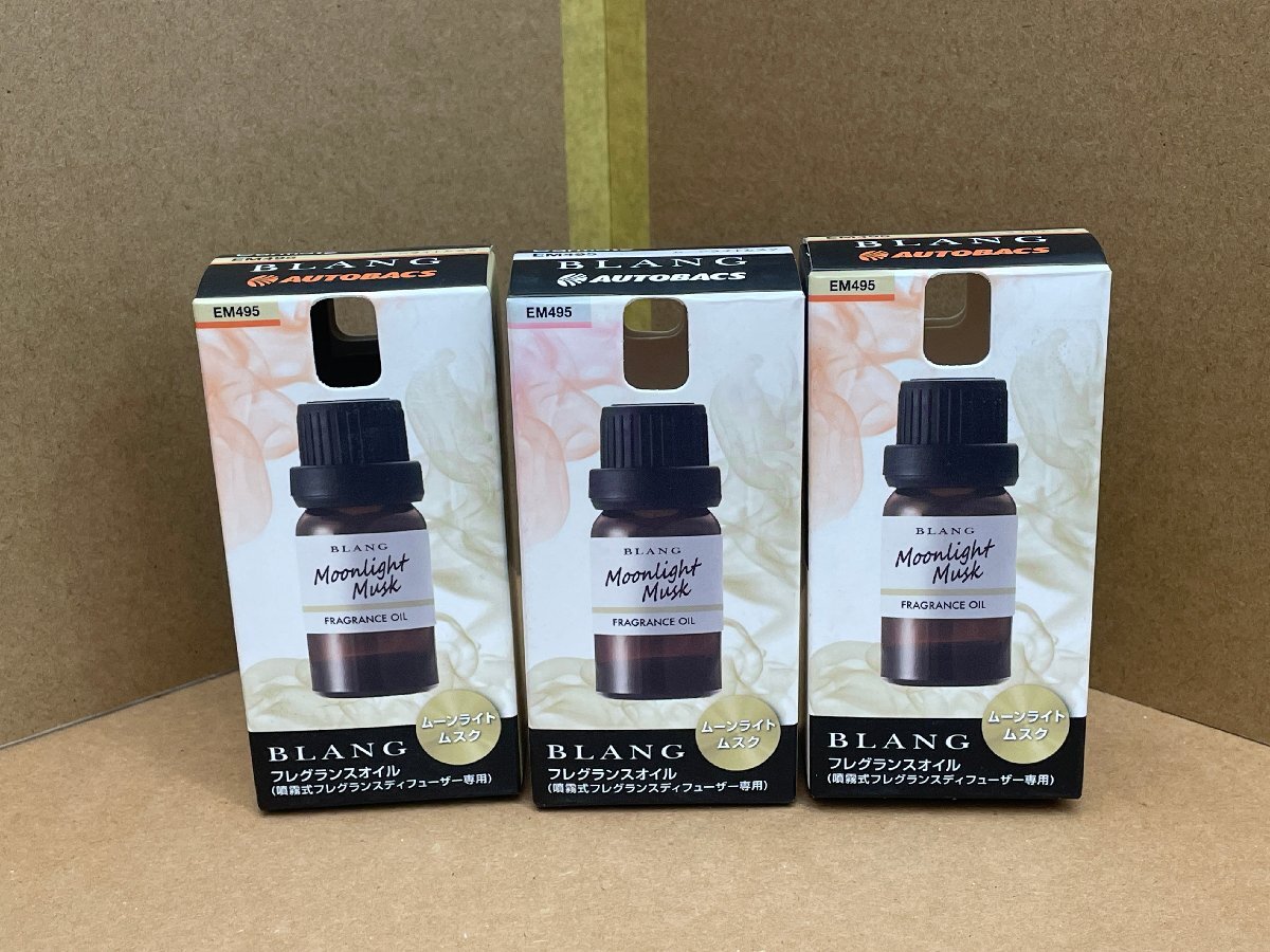 商品をご覧いただきありがとうございます。※撮影のため、パッケージ開封しています(ボトル本体は未開栓です)。※外箱汚損、シールをはがした跡・色あせ・凹み・小キズ等があるため、・品 名:ブラング 噴霧式ディフューザー専用 フレグランスオイル ムーンライトムスク・内容物 :フレグランスオイルボトル(1本入り)x2箱セット☆幻想的にまどろむ月明かりのようなフローラルグリーンの香り!※別途、カーメイト製噴霧式ディフューザーが必要です。落札者様ご自身にて手配ください。※パケージの風合い・色あせ具合等、画像と異なる場合がございますが、未開封ボトル内の物は同じ商品として発送させていただきますので、予めご理解ご了承願います。※アウトレット品に付き傷等ございますので写真にて確認お願いします。※画像に表示しきれなかったキズ・汚れがある場合がありますが、 アウトレット品と言うことをご理解、ご了承の上入札をお願い致します。