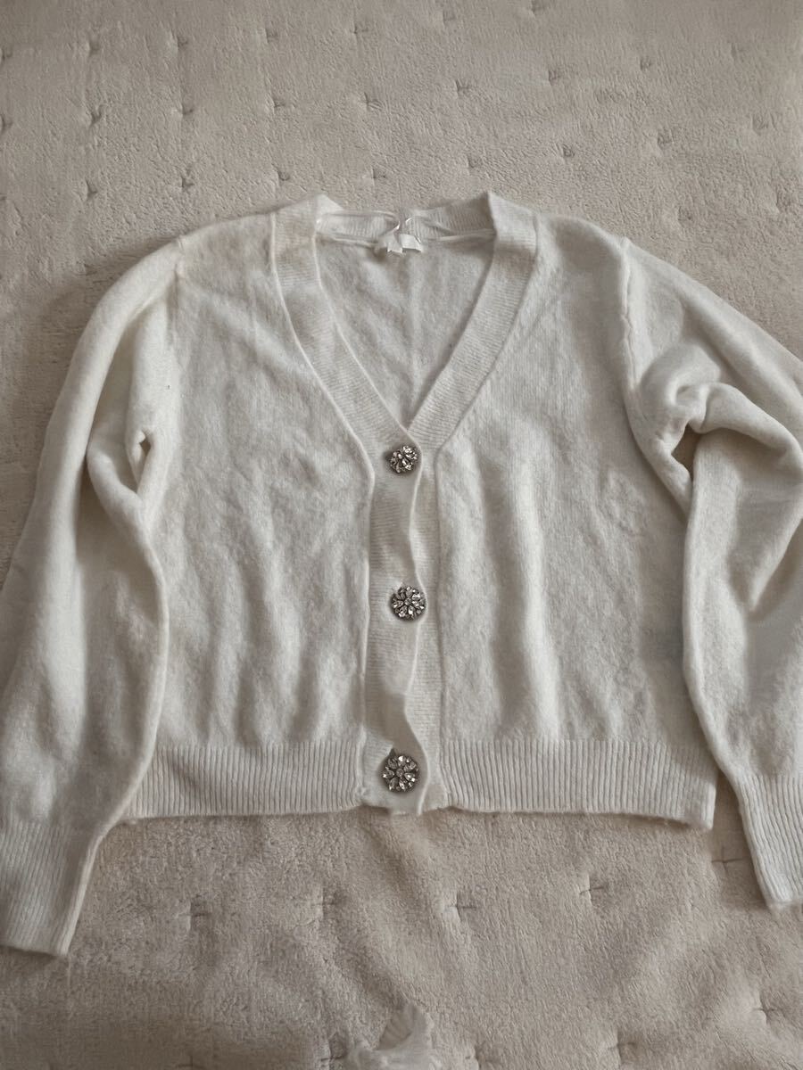 - ★H&M ビジューボタン付きカーディガン 白 Mでもゆったりとしたサイズ