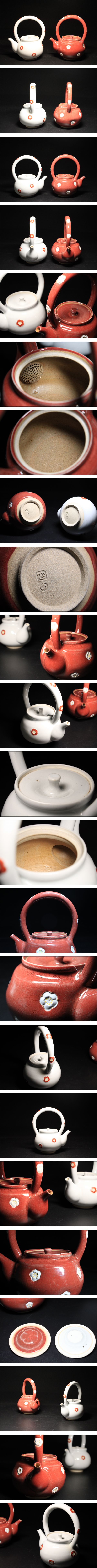 > □■洒落た逸品!森工人 六石窯 土瓶 白磁 辰砂 紅白梅文様 急須 土瓶蒸し 煎茶■□父:森一蔵 懐石 料亭