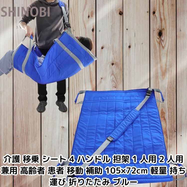 > 介護 移乗 シート 4 ハンドル 担架 1 人用 2 人用 兼用 高齢者 患者 移動 補助 105×72cm 軽量 持ち運び 折りたたみ ブルー